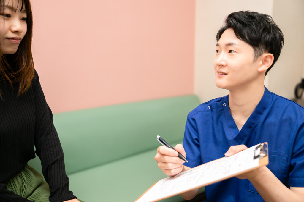 膝痛の場合、まず1回目で「腫れ」「動きの重さ」が軽減しはじめます。根本から再発リスクを減らすには3ヶ月〜6ヶ月が目安。最初は週1回、体調や目標によって徐々に間隔を空けて、無理なく通院できます。